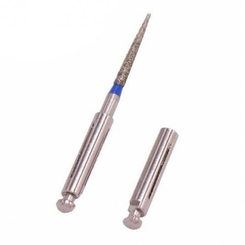 - El instrumento FG es cómodo para el trabajo en clínica y bastante práctico. Se fija en el adaptador para contra ángulo con sólo insertarlo. El vástago está diseñado como un sujetador de apriete para mantenerse en posición por sí solo. Además, el instrumento permanece en el adaptador una vez insertado hasta que se desecha.